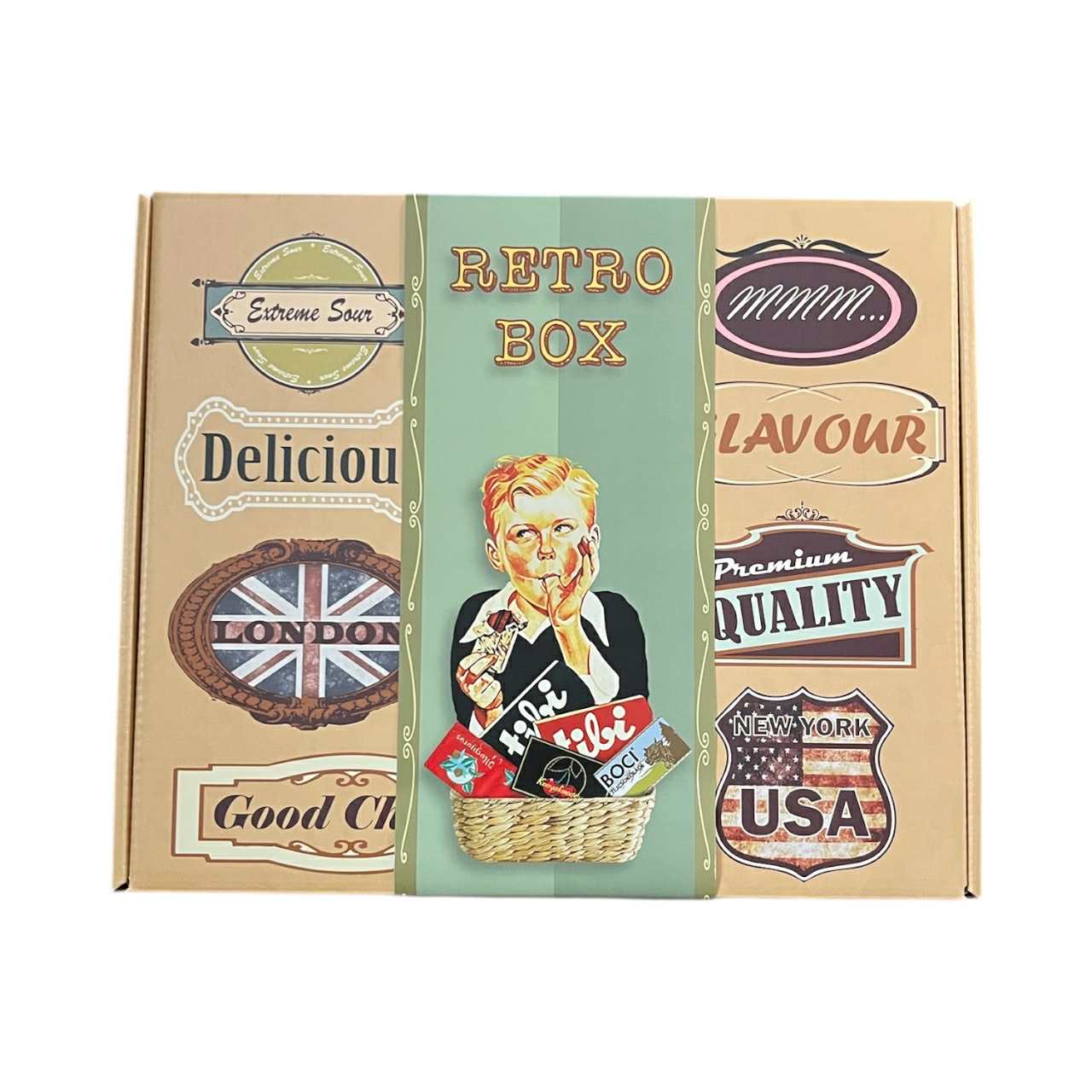 Kojak nyalóka,medvecukor,krumpli cukor,Boci,Tibi,Sport,Francia drazsé,Duna kavics.,Zizi,Barackmag,Meggy Márka…….csak egy pár retro finomság a box tartalmából.Mutatsd meg a srácoknak milyen édességeken éltünk régen vagy lepd meg a szüleidet egy nosztalgikus válogatással!